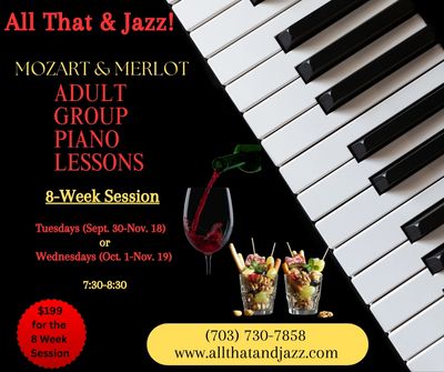 Each one-hour session blends the joy of learning piano with the delight of spirits, hors d'oeuvres, and great company.